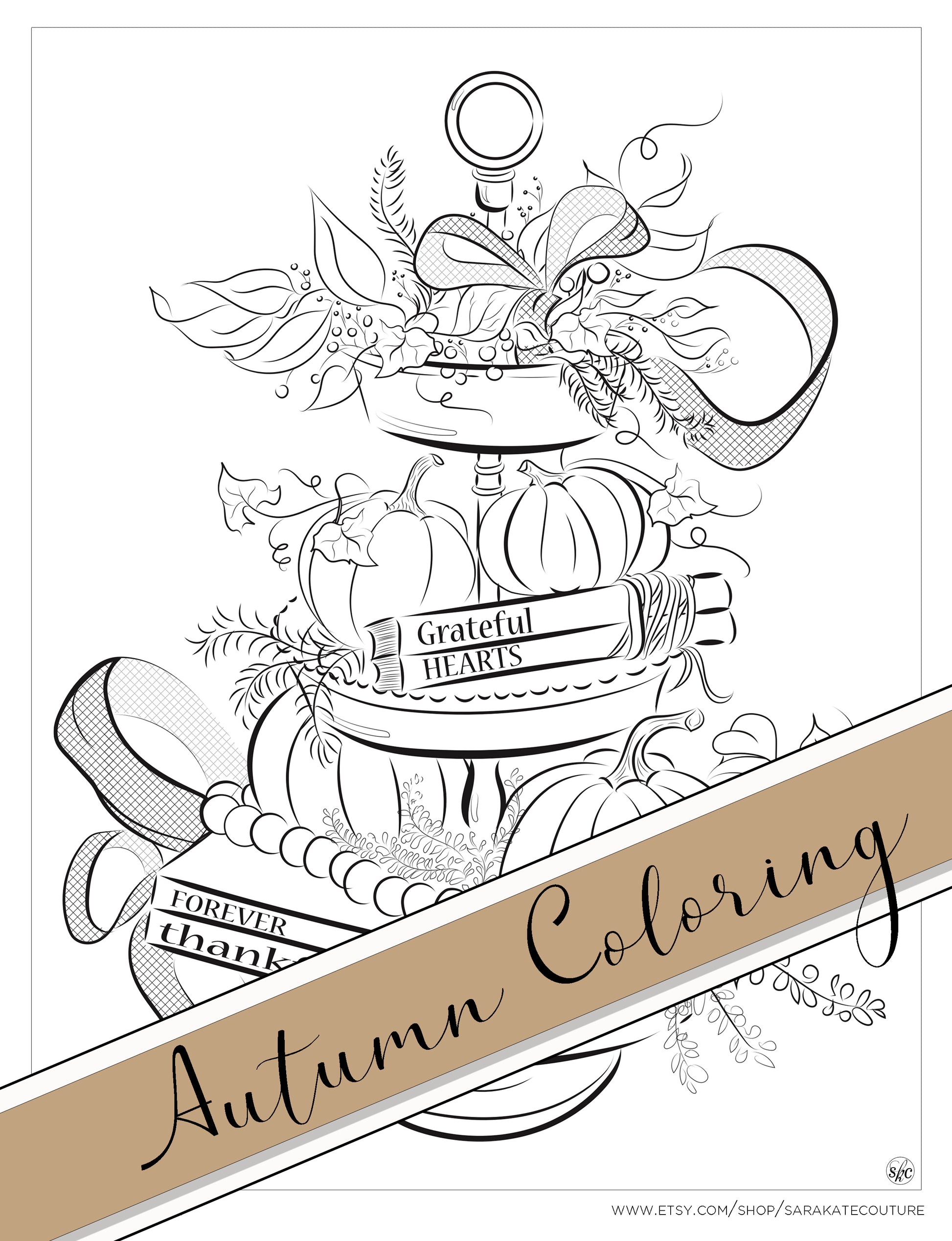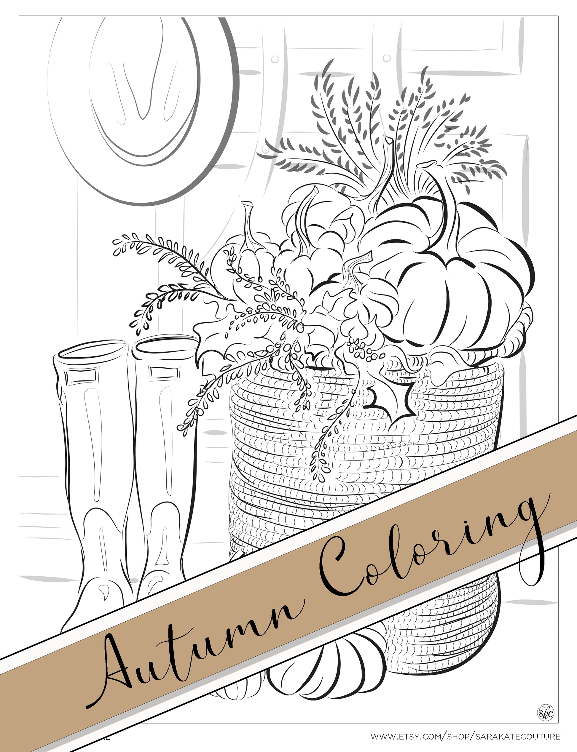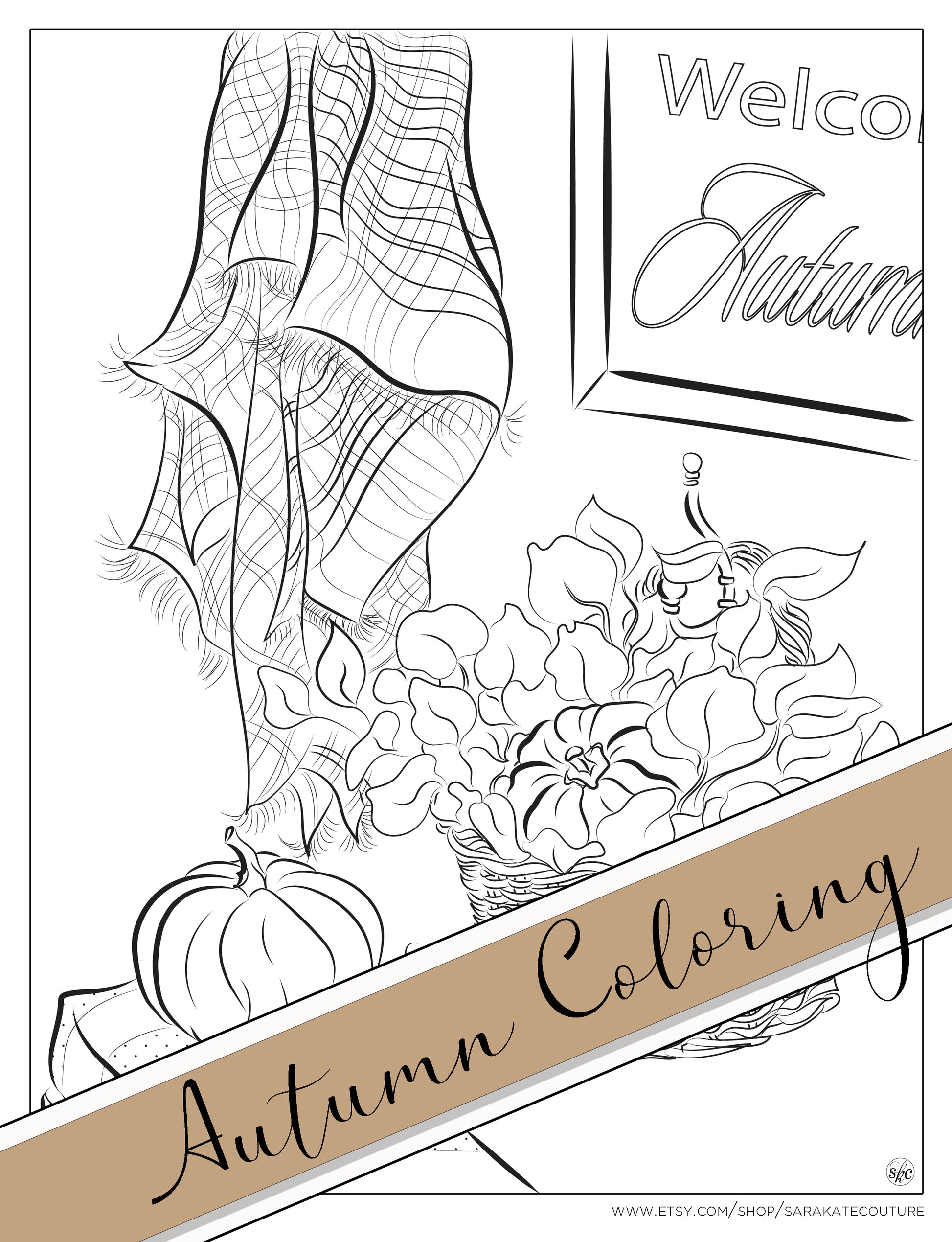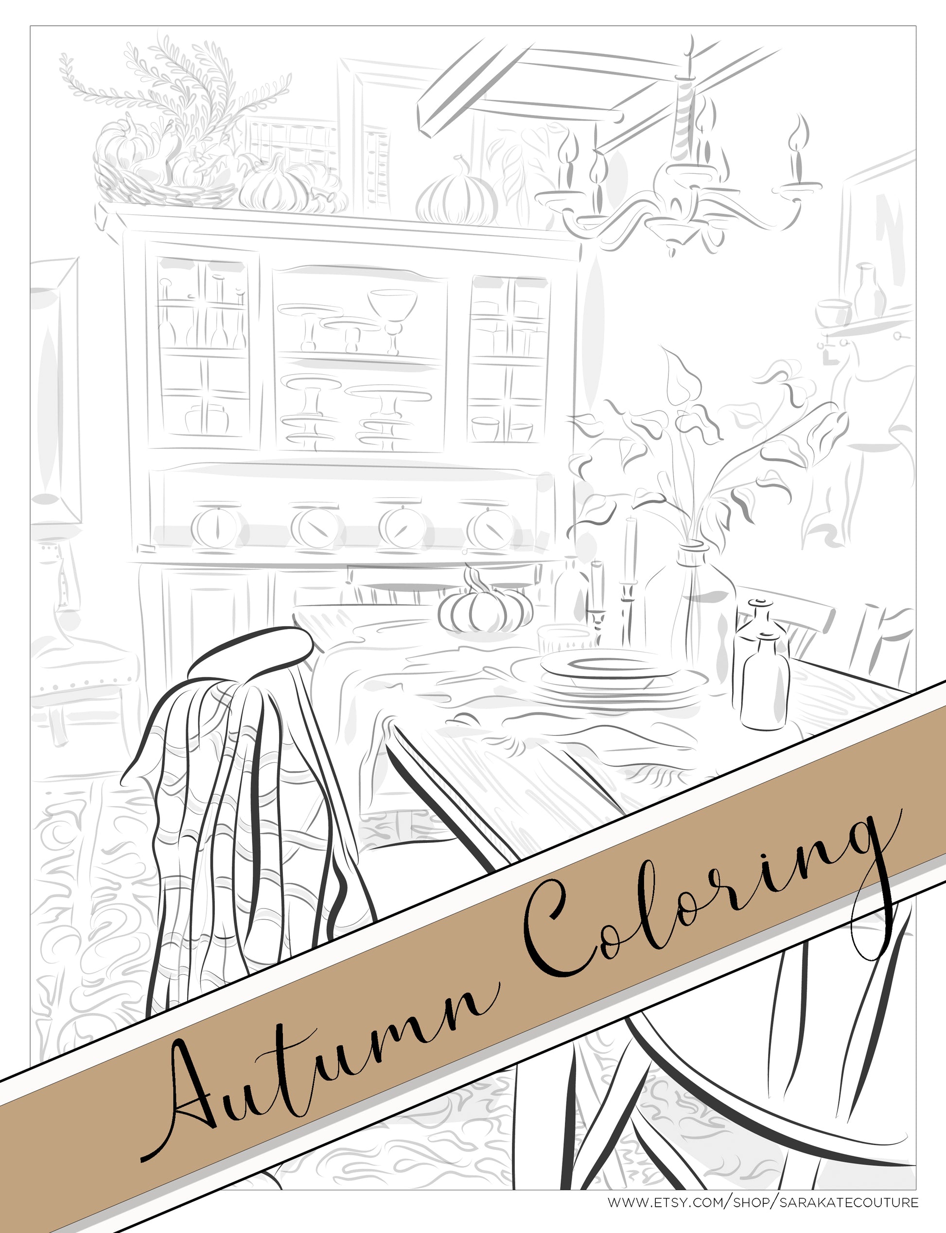 Cozy Autumn Fine Art Coloring Bundle, Digital Download